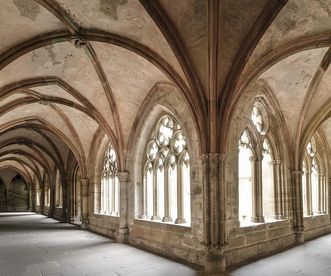 The monk's refectory, a tall and airy hall, is also one of the best examples of early Gothic architecture. Other structures remain from this period, including the south wing of the cloister and the lay refectory. The rest of the cloister, the monks' dormitory on the upper floor and the chapter house with its elaborate ribbed vault originate from the late 13th to mid-14th century. The sophisticated net vault in the connecting structure is typical of late Gothic architecture.